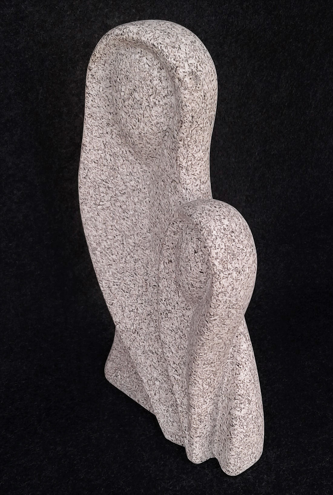 A escultura "Doce Companhia" é uma representação artística abstrata que capta a essência da companhia agradável e reconfortante. Esculpida em granito, a peça mostra uma forma suave e envolvente que parece abraçar ou acolher quem a observa. A superfície do granito é trabalhada para destacar as curvas fluidas e orgânicas da escultura, conferindo-lhe um aspeto tanto robusto quanto delicado.
